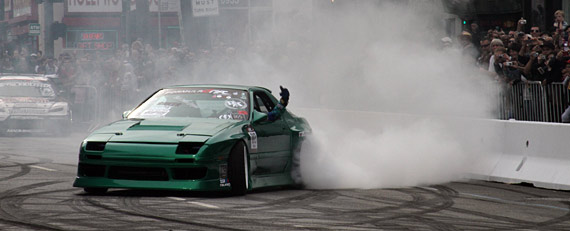 The fans were blown away by the drifting action of drivers Joon Maeng – Full Tilt Poker / Nitto Tires Mazda RX-8, Justin Pawlak – Falken Mazda RX-7, Michael Essa – Nitto Tires BMW 335i, Mike Whiddett – Need for Speed Mazda RX-8, and Samuel Hubinette – SHR Dodge Challenger.