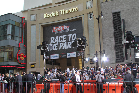 Last night the IZOD Indycar Series invited Formula DRIFT to participate in the “Race to the Party” event in Hollywood. Hollywood Blvd was shut down in front of Mann’s Chinese Theatre and the Kodak Theatre and thousands of fans gathered to watch Formula DRIFT vehicles do a demonstration, Indycar pit stop challenge, and a special performance by Camp Freddy.