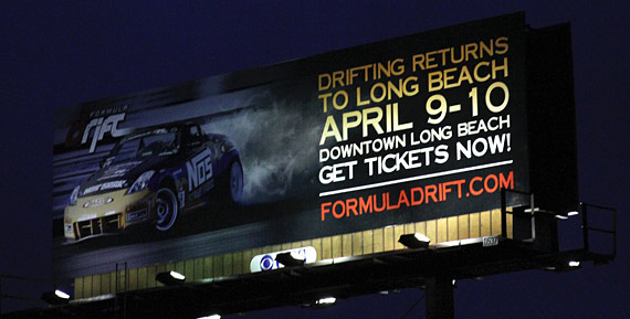 Formula DRIFT Round 1: Streets of Long Beach Billboard News Posted on March 19, 2010 by FormulaD Here is a photo of the billboard at dawn.