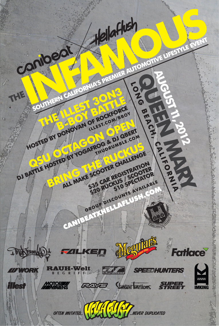 The Infamous Presented by: Canibeat & Hellaflush News Posted on August 6, 2012 by FormulaD Date: Saturday August 11th, 2012 | Time TBD Location: The Queen Mary 1126 Queens Highway Long Beach, CA 90802 Click here for more information