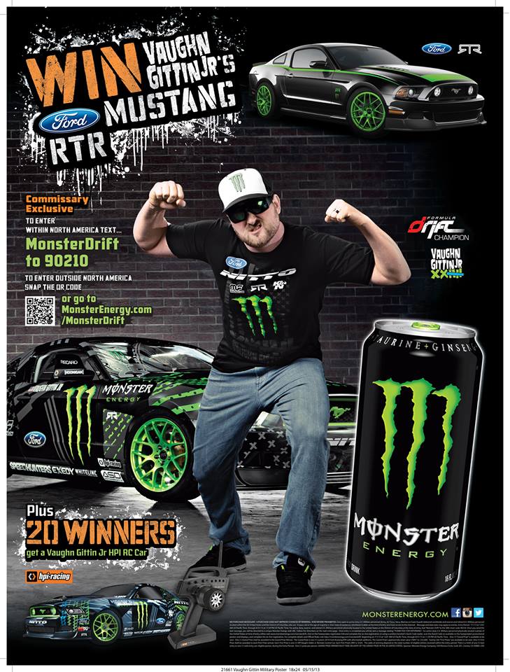 Active and retired US Military! Enter to win a one of a kind brand new 2014 Mustang RTR Spec 2, or be one of 20 lucky winners to receive an HPI Racing Monster Energy Nitto TireFord Mustang! Within the US, text MONSTERDRIFT to 90210, or outside of the US, visitwww.MonsterEnergy.com/MonsterDrift to enter. Active and retired US Military please only apply. Sweepstakes runs now through August 31st!