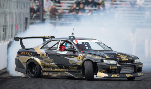 When asked about his decision to pilot a JZX100 Chaser, Baribeau stated that “The chassis is very similar to what I am familiar with as I have been drifting a JZX90 Mark II since 2008. I didn’t want to throw (away) the entire R&D that we have done, so staying with a chassis that our team knows inside and out was an easy choice to make.”