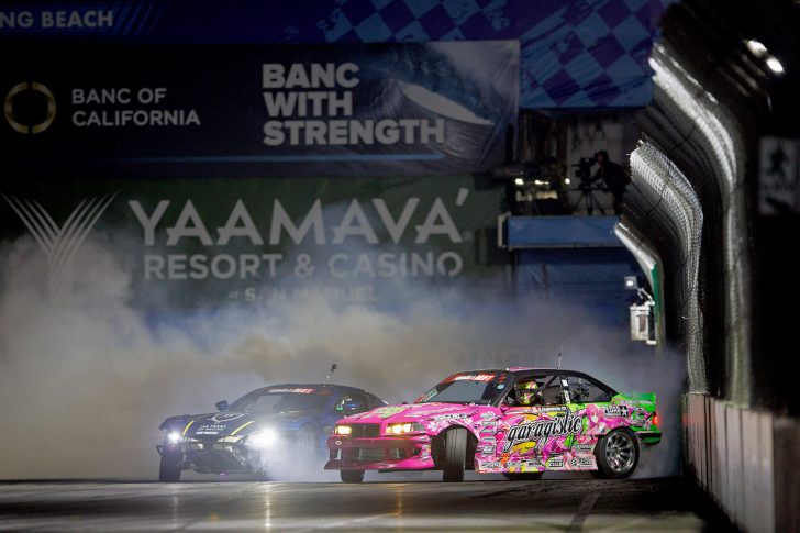 • The drivers were split between the Formula DRIFT PRO and PROSPEC Championships. While the PRO teams competed on this course last weekend, the PROSPEC drivers don’t compete on the Streets of Long Beach during their season, giving the PRO drivers an advantage