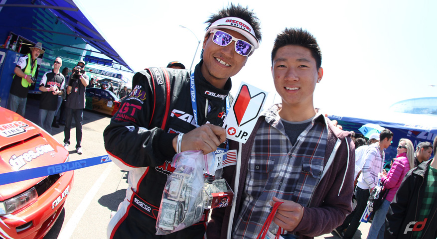 Justin Pawlak finds the top of the podium for the very first time in his career. Pawlak remained consistent through the rounds advancing to the Finals against Matt Powers. His consistency paid off and Pawlak was able to secure the victory. The consolation round pitted Daijiro Yoshihara in the Discount Tire / Falken Tire Nissan S13 against 2009 Formula DRIFT champion, Chris Forsberg in the NOS Energy Drink Nissan 370Z.
