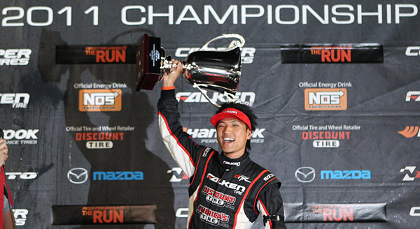 The results of the event could only be described as the ultimate finish to crown a champion. This event was the closest and most competitive chase for the championship in Formula DRIFT history, with 5 drivers entering with a chance at the title. Rookie of the year honors went to Aurimas “Odi” Bakchis. Many scenarios played out with such a close gap in the point standings. Daijiro Yoshihara entered with the point lead and was taken out early in the Top 16 opening the door for the others to take the championship. Yet, the stars were aligned for Yoshihara and by a narrow margin he was able to hold onto the lead to win the 2011 Formula DRIFT Championship along with the Tires.com Triple Crown. Marking the first time in Series history that the champion also wins the bonus prize.