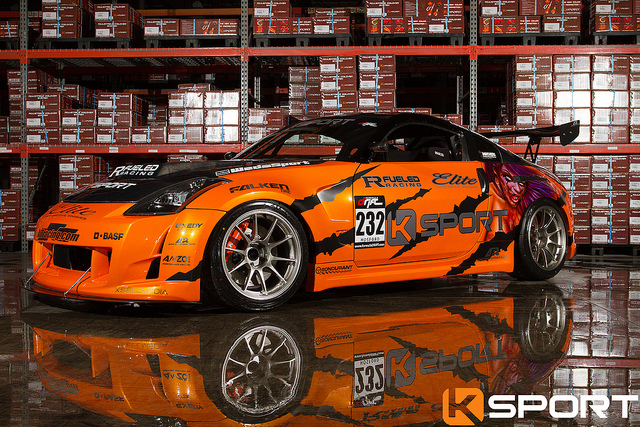Corey Hosford is an up and coming Formula Drift rookie for the 2012 season. Here is the K-Sport Nissan 350z that will be his competition car for next season. His tire sponsor shows Falken Tire and this orange 350z should stand out on the grid. Follow Corey next season on his pursuit for the 2012 Formula Drift Rookie of the Year run. Also don’t forget to follow Corey Hosford on Facebook & Twitter.