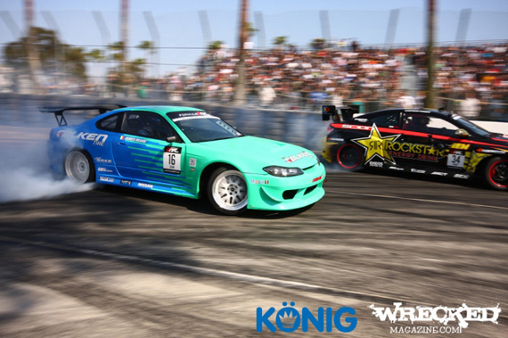 The long awaited game for Formula DRIFT has arrived on Wrecked Magazine. Once you register you become a Formula DRIFT general manager commanding a roster of four drivers. You can compete in public leagues where you can invite friends and have randomly assigned players join to fill the league. You can also run a private league which requires you to invite anyone you want to play into your game. So start a league with work, your drift buddies, or some degenerates from your favorite car forum and draft up for Long Beach!
