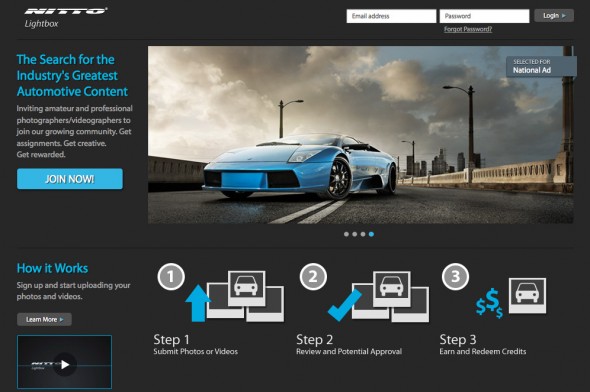 Nitto Tire is inviting amateur and professional automotive photographers and videographers to join. With Lightbox, “photographers and videographers will be able to submit great photos and videos taken of Nitto tires in action. Creativity is heavily encouraged, as efforts will be generously rewarded. Individuals whose videos or pictures are selected by Nitto will be awarded a set number of points. The points can be redeemed for Nitto t-shirts, tires, or gift cards worth up to $2,000 and many other prizes. A participant’s image or video may appear in a Nitto national ad, brochure, social media campaign or any number of other applications.