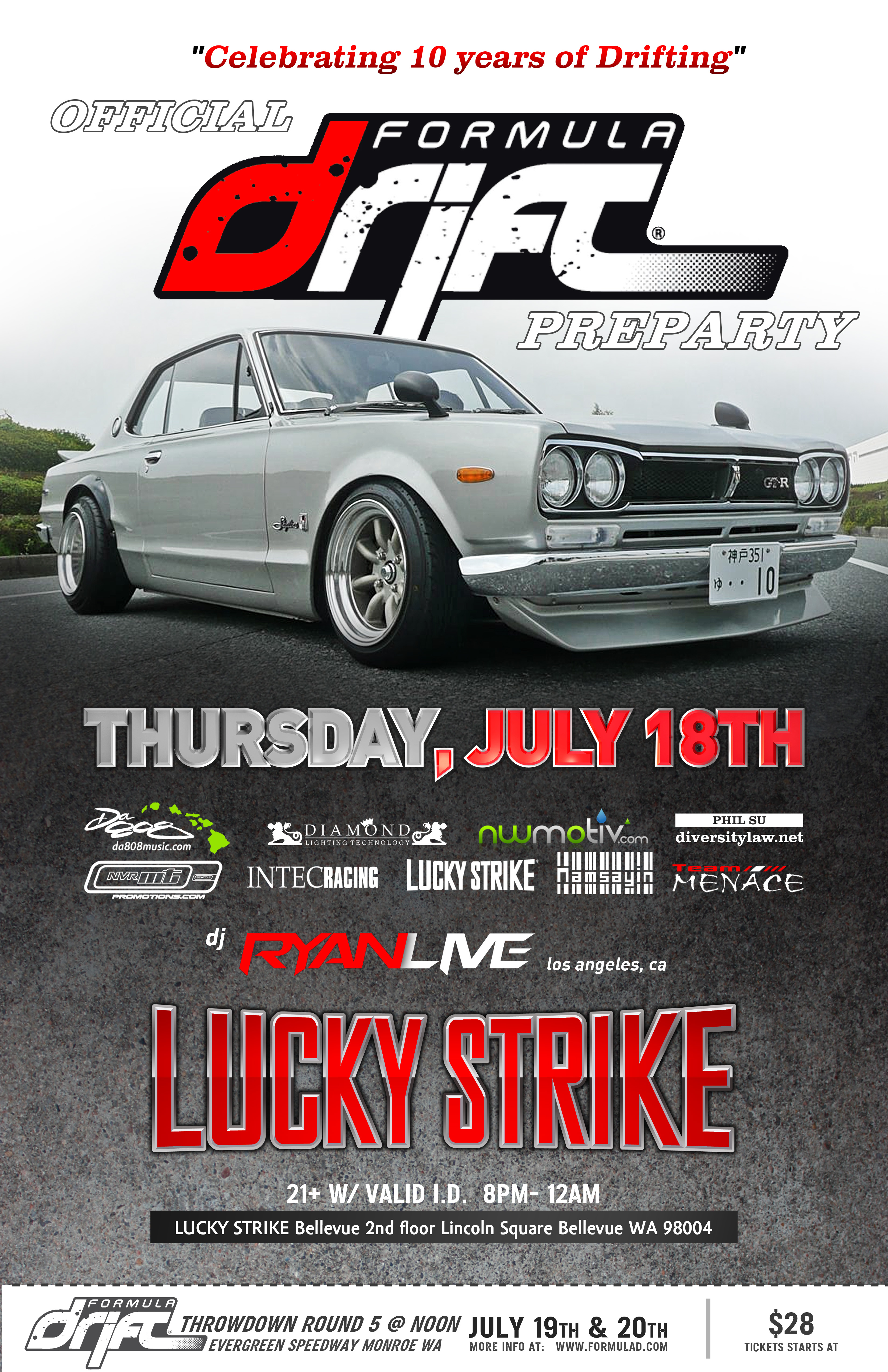 “Each year we look forward to the action and excitement at Evergreen Speedway and this year did not disappoint. The championship chase is heating up with only two events left in the season,” stated Jim Liaw, president and co-founder of Formula DRIFT. “The chase is as close as it has ever been and we look forward to returning to Texas for the next round of competition and then the Finals in Irwindale.”