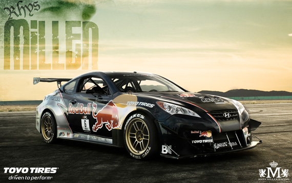 You’d be, say, a tire used by Formula Drift pro Rhys “Mad Skills” Millen, 35, of San Juan Capistrano, who drives the No. 6 RMR Red Bull Hyundai Genesis coupe.